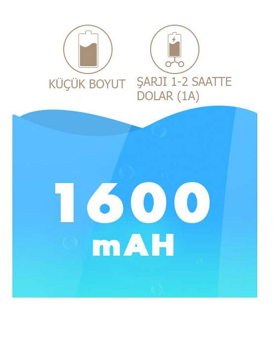 Cevap:Merhaba şarj ortalama pc veya power bank üzerinden 4-5 saat de şarj olmaktadır, şarj kullanıma bağlı değişir efendim 1600 mAh mili amper saat demektir